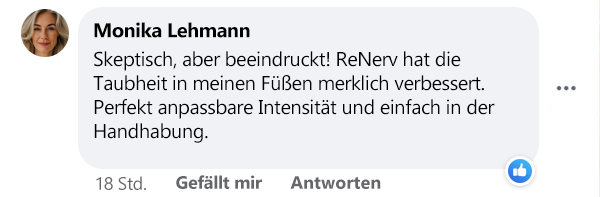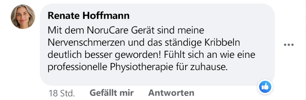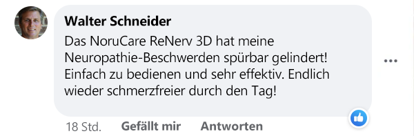 "Mein Mann hatte schon seit Jahren mit schmerzhaften Nervenproblemen in den Füßen zu kämpfen, besonders nachts wurde es unerträglich. Er konnte kaum mehr schlafen und tagsüber war jeder Schritt eine Qual. Seit er das NoruCare ReNerv 3D nutzt, sind seine Beschwerden wie weggeblasen. Das Kribbeln und Brennen ist fast komplett verschwunden. Er ist total begeistert und nutzt es täglich! Ich bin so froh, dass wir es gekauft haben!"