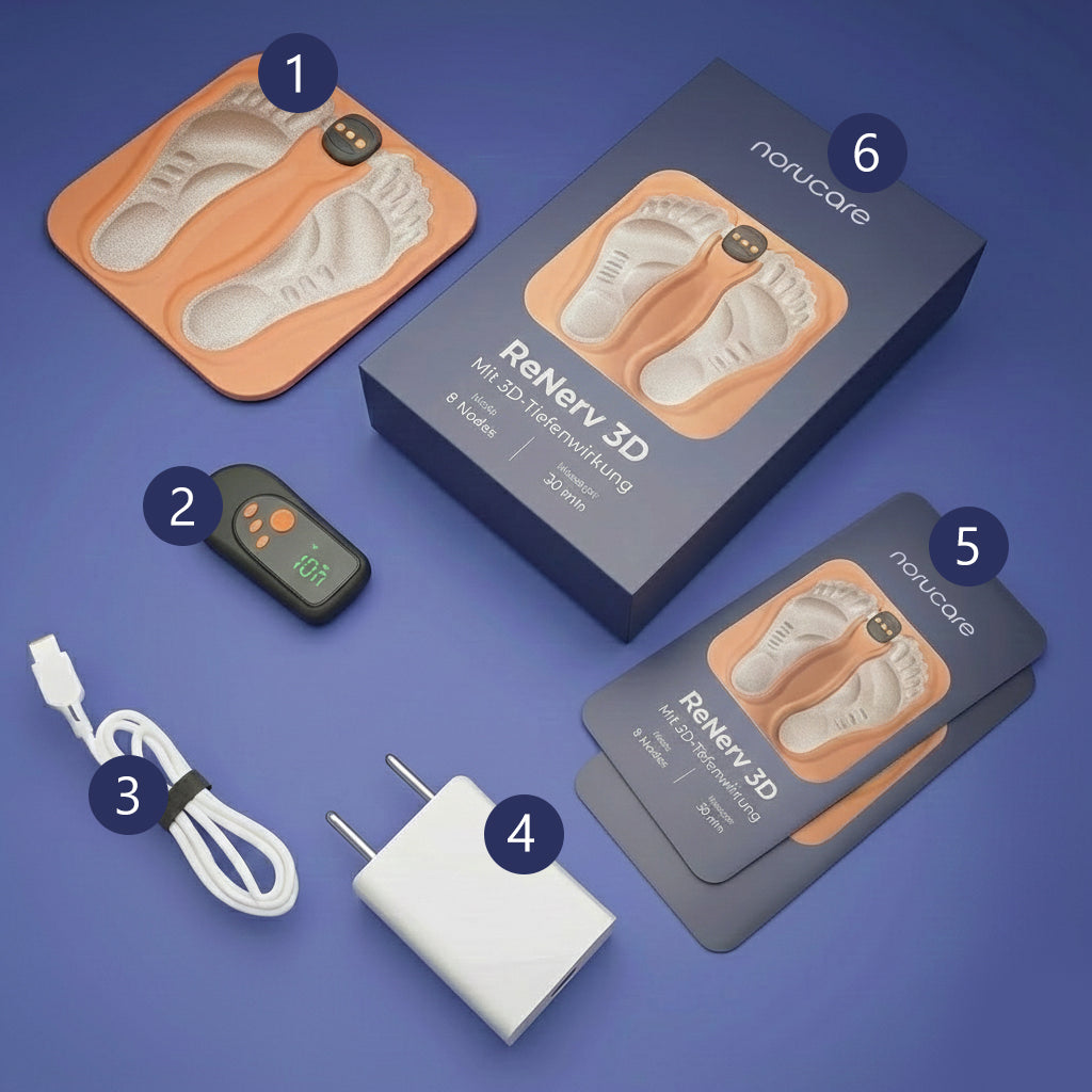 NoruCare ReNerv 3D wurde speziell für Menschen mit Neuropathie, Nervenschmerzen, Kribbeln, Brennen oder Taubheit in den Füßen entwickelt. Das Gerät ist besonders hilfreich bei diabetischer Neuropathie, Durchblutungsstörungen oder altersbedingtem Nervenabbau. Es eignet sich für alle, die eine medizinisch wirksame Therapie ohne Nebenwirkungen suchen.